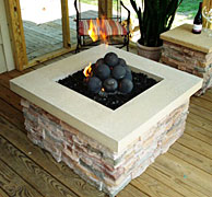 With a choice of several finishes and inserts in addition to hundreds of dollars less than the manufacturer's suggested retail price, this fire pit is a smart buy! This ICS Fire Pit is built with your choice of insert. Insert choices are Glass (FireGlass), FireBalls or Artificial Logs. Fast and easy assembly/disassembly with your choice of four stone finishes and two cap finishes. For use with natural gas or propane.