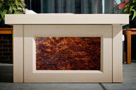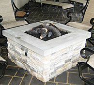 You wanted it so ICS created it! A quality turnkey fire pit with contemporary lines! The additional customization available for this fire pit makes it extremely versatile. The side panels can be left plain, or graced with your choice of copper or stone veneer for an additional cost. The fire pit serves as the centerpiece for the deck or patio both visually and socially. Concrete offers a unique role as a strong mediator to bring out the best features in complimentary materials such as stone veneer and decorative copper accents. These materials are easily applied within the recessed beveled inserts fusing them together in a dramatic marriage of texture and shape. Or, if leaving the inserts unadorned, it renders a sleek, contemporary flavor to the fire pit. This fire pit includes everything you need (other than a propane tank if you plan to use propane). It even comes with a vinyl cover to protect it from the elements.